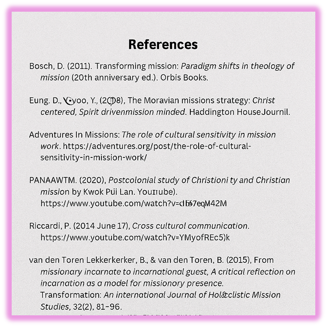Professor Davis, thank you for your thoughtful engagement and encouraging feedback. Designing a short‑term mission trip that truly embodies partnership begins with a pre‑departure, locally led listening and co‑design phase that centers regional leaders, trusted community representatives, and diaspora partners in agenda‑setting and decision‑making (Bosch, 2011; Eung & Ryoo, 2008).